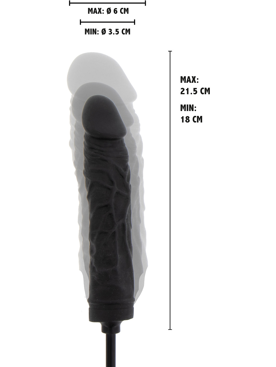 This is an inflatable anal dildo with a tapered top designed to slide in as smoothly as possible. Its realistic design with highlighted glans and pulsating veins provides extra stimulation. As always with anal stimulation, don't forget water-based lubricant.