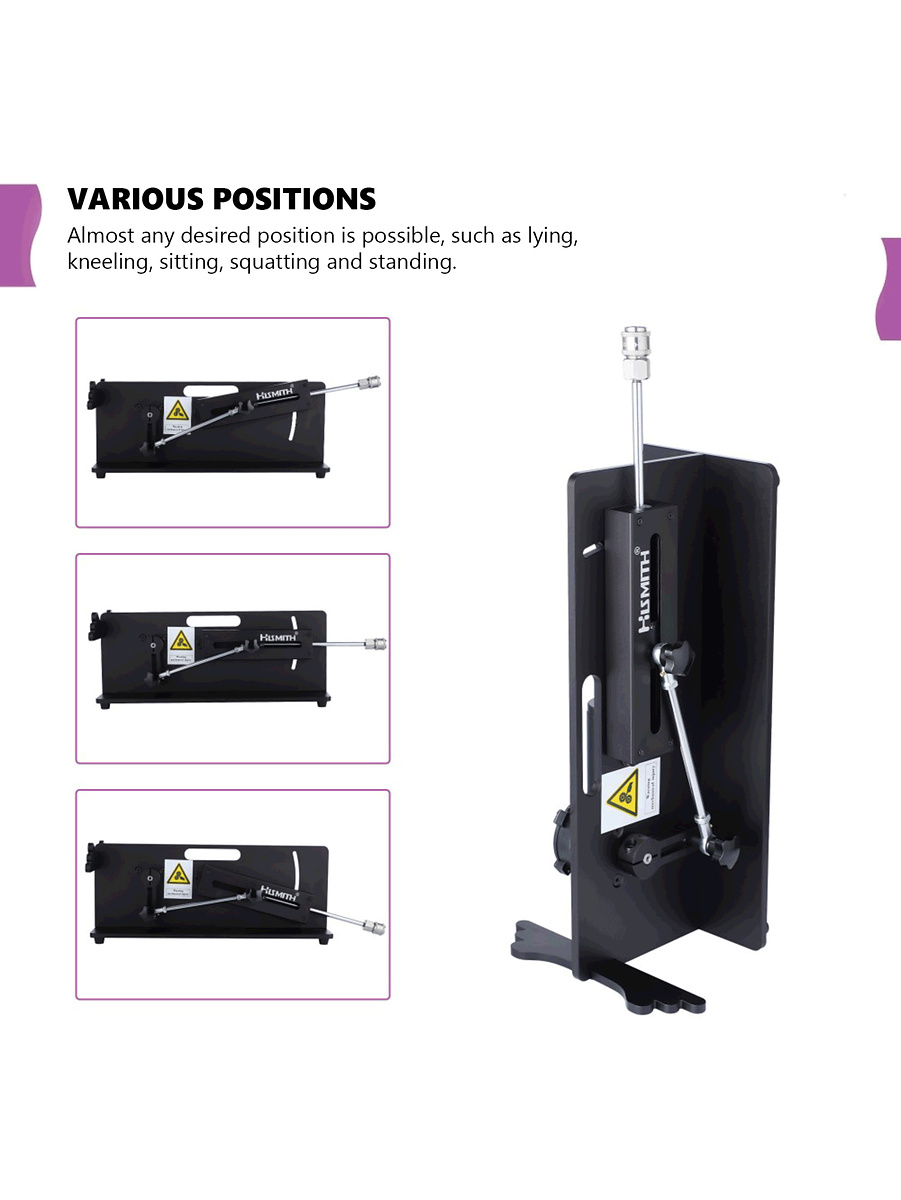 The arm of the sex machine can be easily adjusted to different angles so you can explore all possible sex-positions alone and with a partner. Excellent for positions lying down, sitting, standing, kneeling and many more. It can also be set upright for even more possibilities.