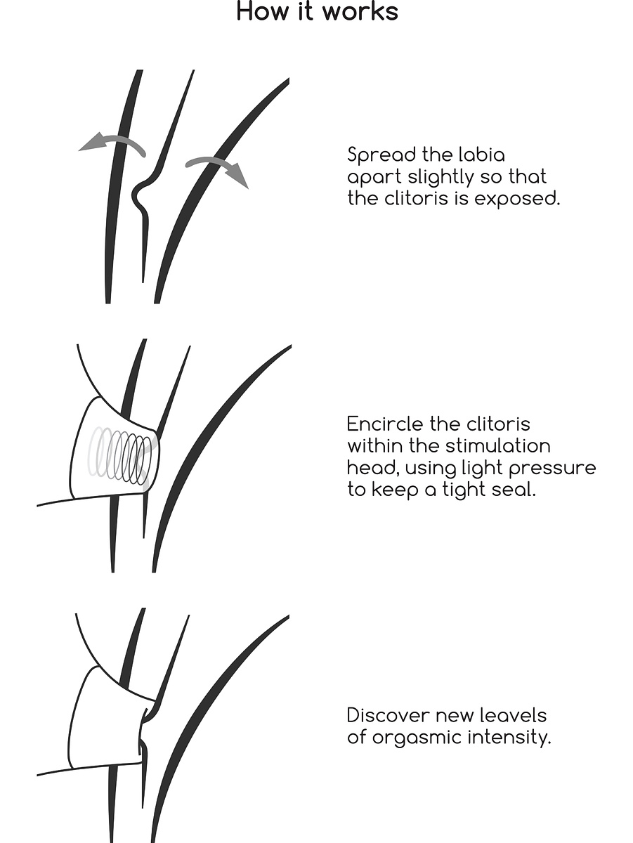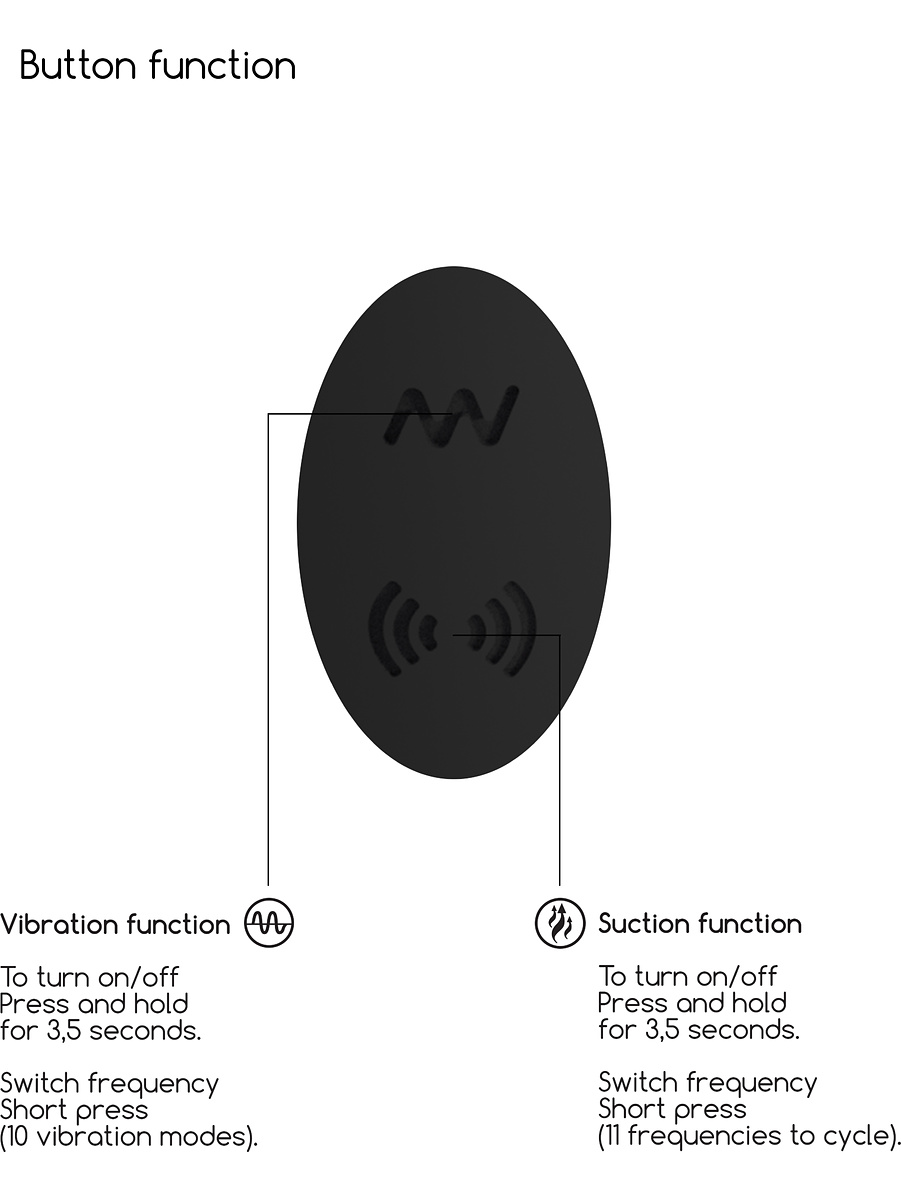 So how does Desirable work? Place the shaft vaginally, preferably together with a water-based lubricant. Then spread the labia so that the clitoris becomes visible. Wrap the silky nozzle around your clitoris and apply light pressure to create a vacuum. Start it with a simple push of a button and choose between its 11 suction intensity modes and 10 vibration-modes (3 speeds and 7 patterns).