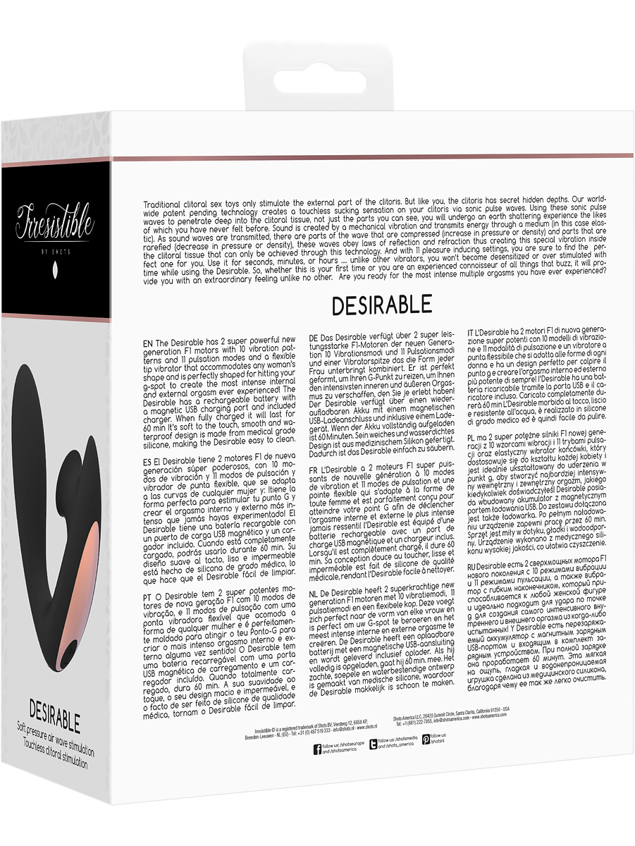 The unique "Touchless Airwave"- technology found inside Desirable stimulates the clitoris using sonic pulse waves that provide an amazing and sucking sensation without touching the clitoris. These pulsating sound waves go deep and also stimulate parts of the clitoris that you cannot see, giving you a completely new experience and sensation without the risk of overstimulation.