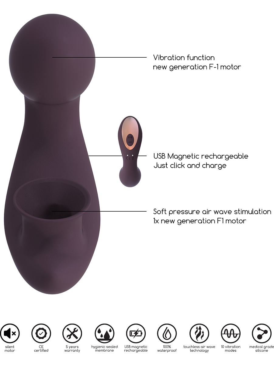 The unique "Touchless Airwave"-technology found inside Desirable stimulates the clitoris using sonic pulse waves that provide an amazing and sucking sensation without touching the clitoris. These pulsating sound waves go deep and also stimulate parts of the clitoris that you cannot see, giving you a completely new experience and sensation without the risk of overstimulation.