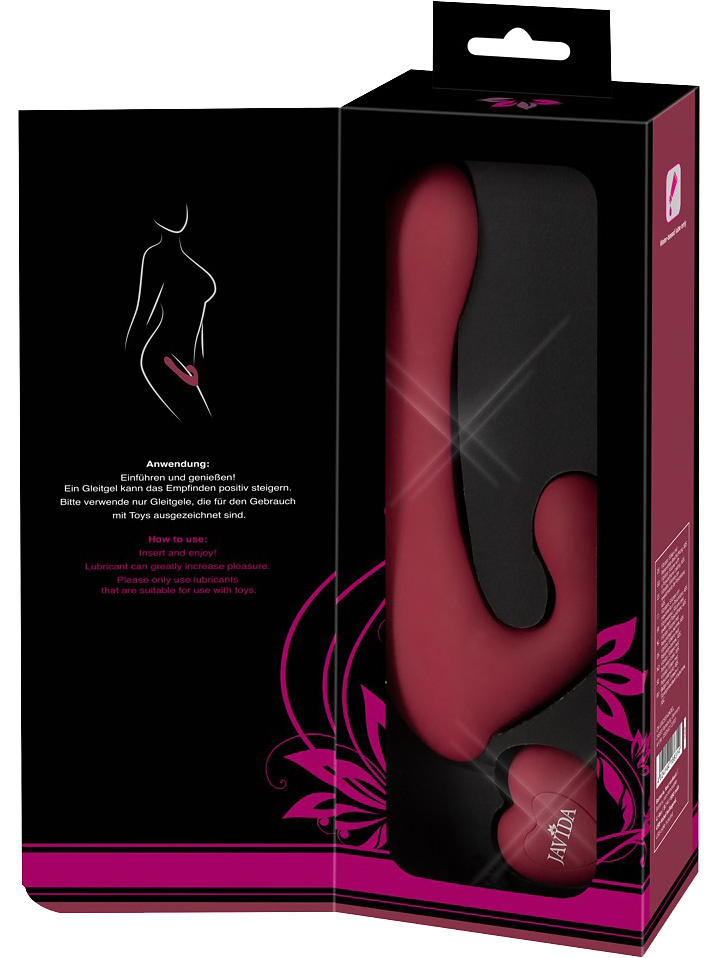 RC Rotating Rabbit Vibrator from Javida stimulates both your insides and clitoris. The vibrating shaft with a rotating top ensures exciting massage of the G-spot while the flexible clitoral stimulator delivers vibrations. All functions can be easily controlled with the stylish, heart-shaped remote control.