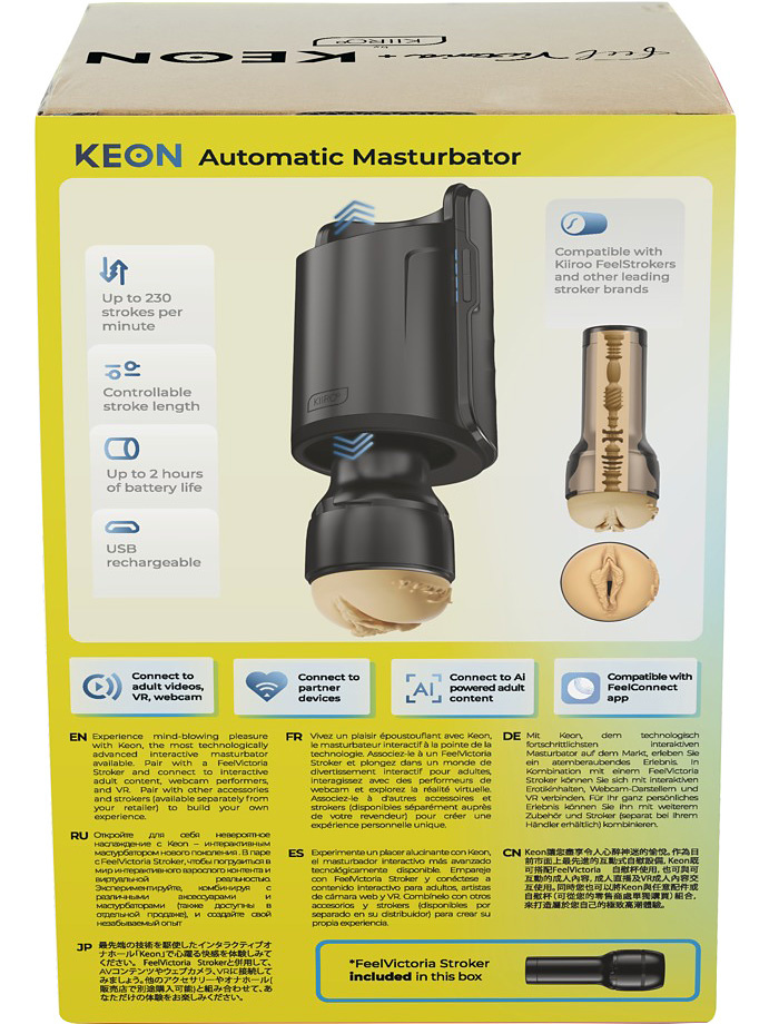 Kiiroo continues to raise the bar for interactive pleasure – here comes Keon, the smartest automatic masturbator on the market, now combined with the exclusive FeelVictoria Stroker! This package combines innovation, design and realism in a powerful overall concept for maximum pleasure.