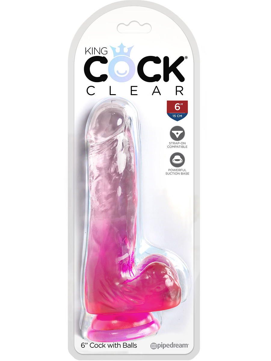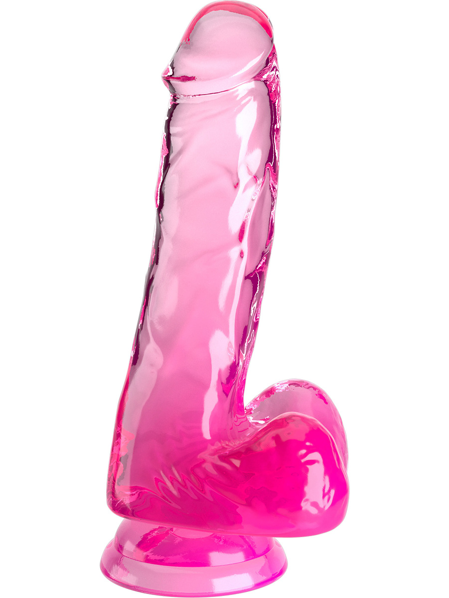 King Cock Clear Dildo with Balls, 18 cm, pink