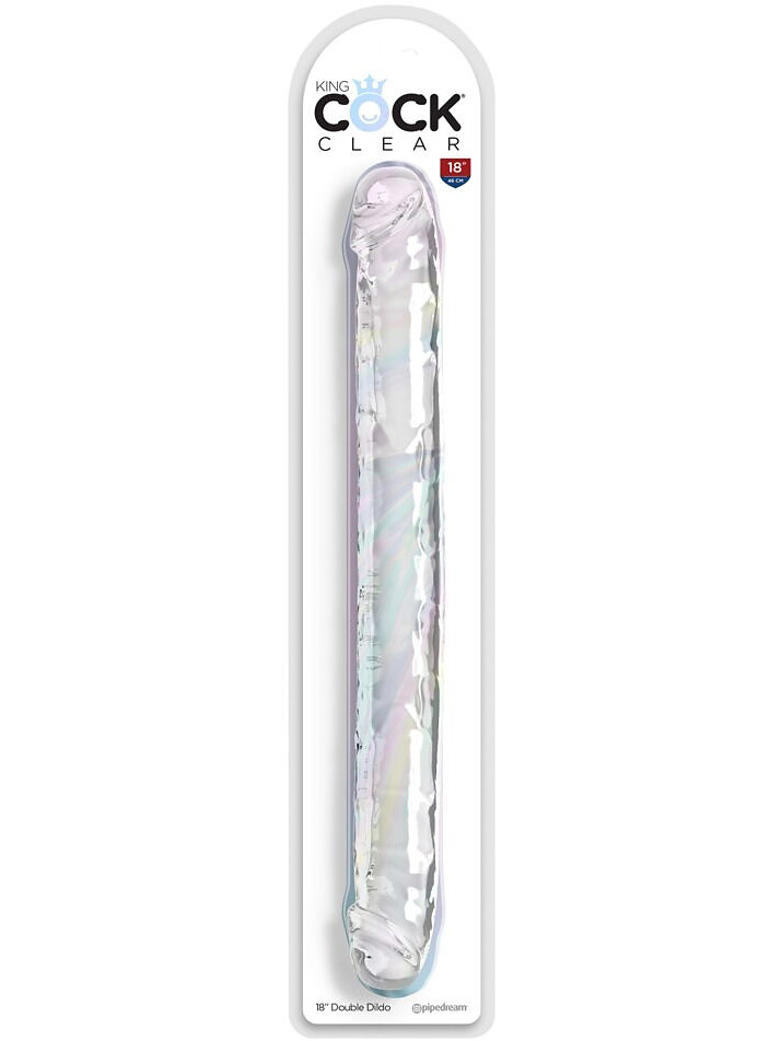 King Cock Clear Double Dildo is a delicious double dildo that combines a glossy transparent look with realistic details: flexible shaft, pulsating veins and marked glans.
