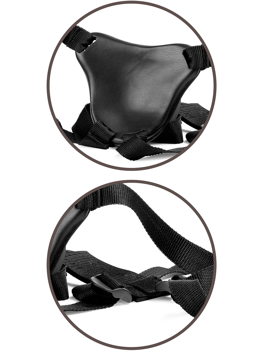 The sturdy and wide straps can be adjusted with plastic buckles for a secure and comfortable fit. The strap around the hips can be adjusted between 61 - 137 cm. Of course, other dildos and vibrators with suction cups (less than 8.6 cm) can also be attached to the Body Dock.