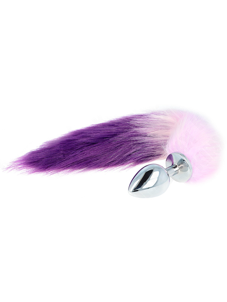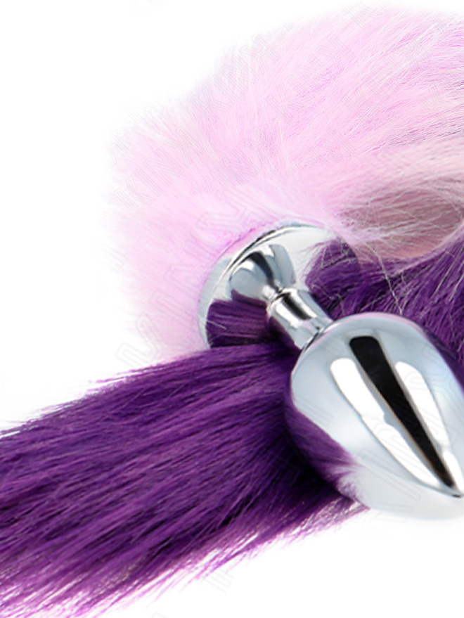 Feel how the soft and thick fake fur tail tickles and rubs against your legs while the silver-colored metal anal plug provides a pleasant stimulation. The 40 cm long tail goes from light purple to dark purple for a playful look.