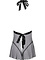 The satin collar can be tied at the back of the neck and the waistband is tied across the back. Matching thongs included.