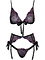A strapless bra, suspender and thong set from Kissable, made from a delicate powernet with floral embroidery in pink and purple. All parts are soft and stretchy for a very comfortable fit.