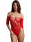 Unleash your inner goddess with this beautiful red Teddy that is embellished with lace patterns and shiny stones. It has a shoulderless design with 3/4 sleeves and below it has an open design. The material has stretch in four directions and molds to the body.