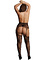 Tights with suspenders for a sexy look. The garterbelt has a high waist and a lovely design over the stomach that matches the design on the back of the thighs. The socks also have a backseam. The material has a lot of stretch and molds to the body. Fits sizes XXL to 5XL.