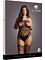 Strapless and crotchless Teddy with a striped design across the chest and a delicious mesh-design below. The teddy is paired with socks in the same design. At the back of the socks there is a sexy seam.