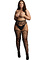 Tights with suspenders in a stylish mesh-design with leopard-print. At the front, there are narrow straps that connect the pieces and at the back, the design is open to highlight your butt. The material has a lot of stretch and molds to the body. Fits sizes XXL to 5XL.