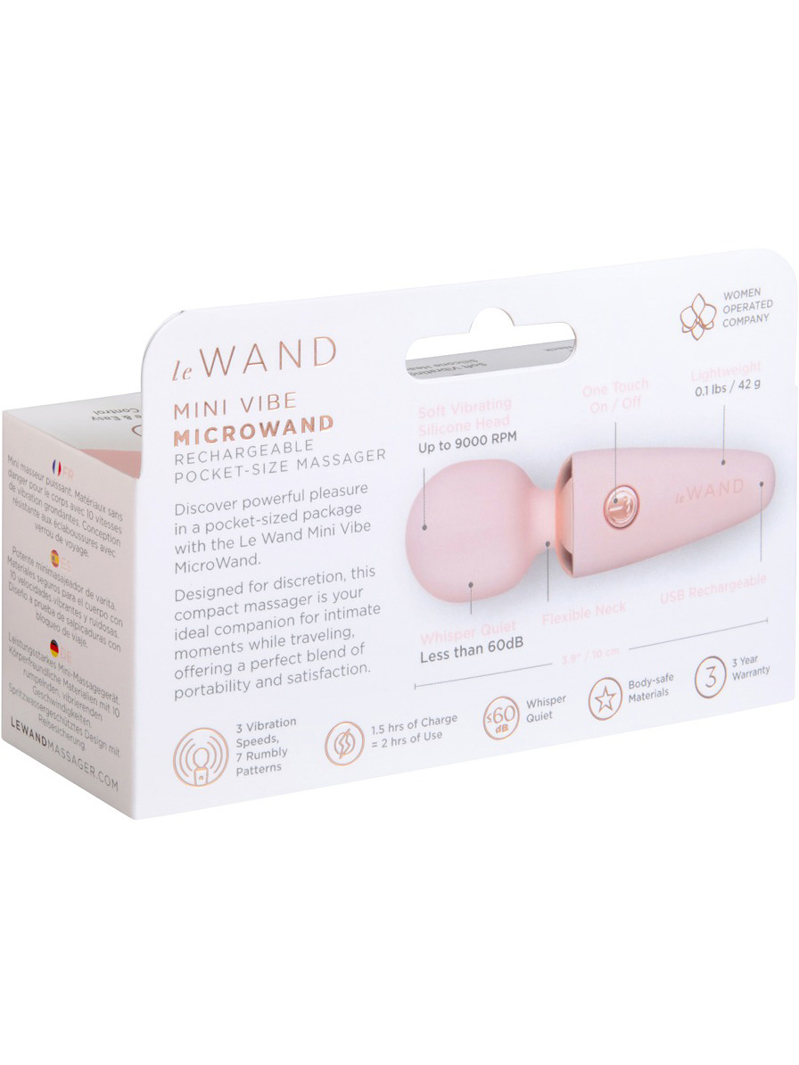 The whisper-quiet motor allows you to enjoy undisturbed pleasure. The Mini Vibe Microwand is rechargeable via USB and IPX5 rated, meaning it is splash-proof and easy to clean.