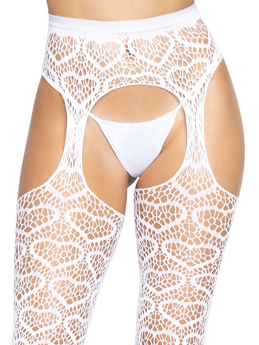 Heart Net Suspender Hose - Sexy pantyhose with suspenders and hearts!