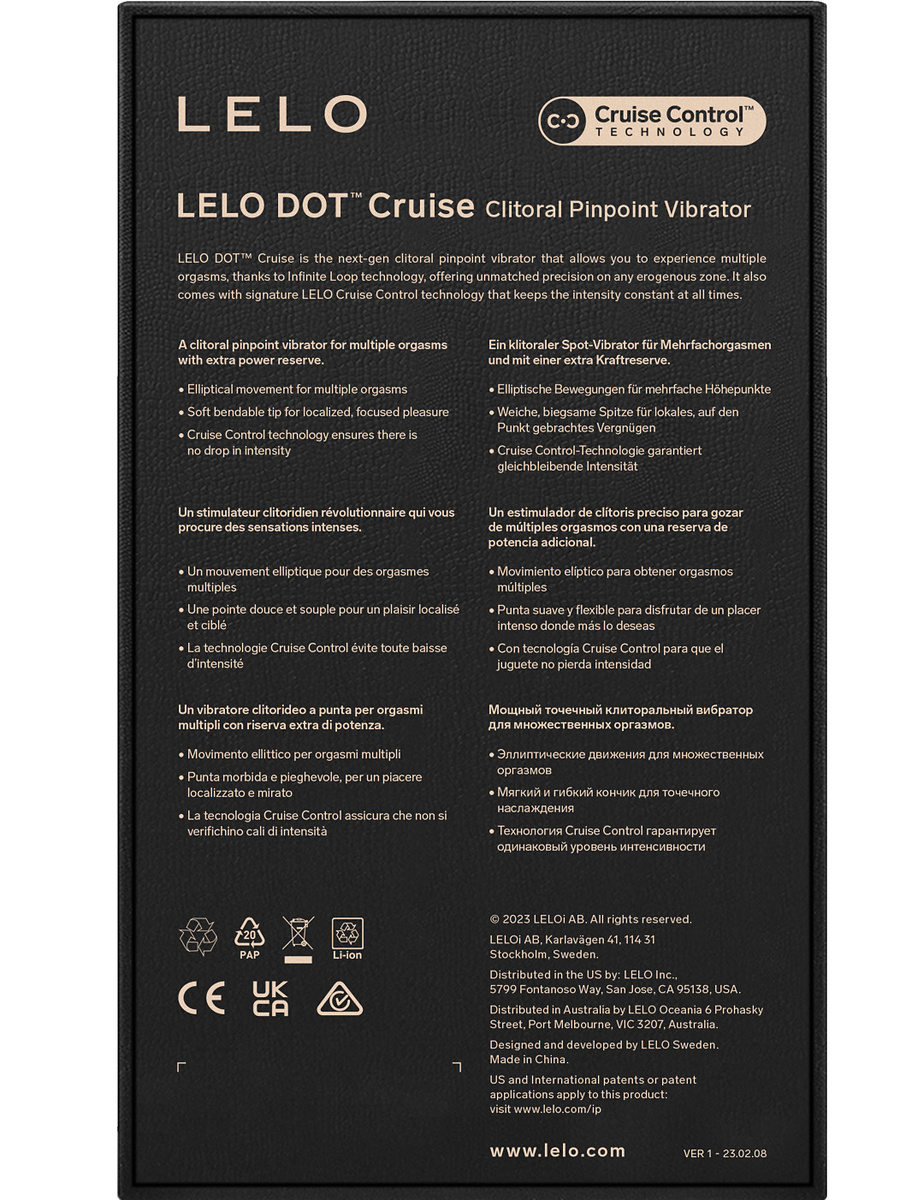 LELO Dot Cruise offers you 8 different vibration-patterns with different intensity-levels, from a gentle whir to a satisfying pulsation.