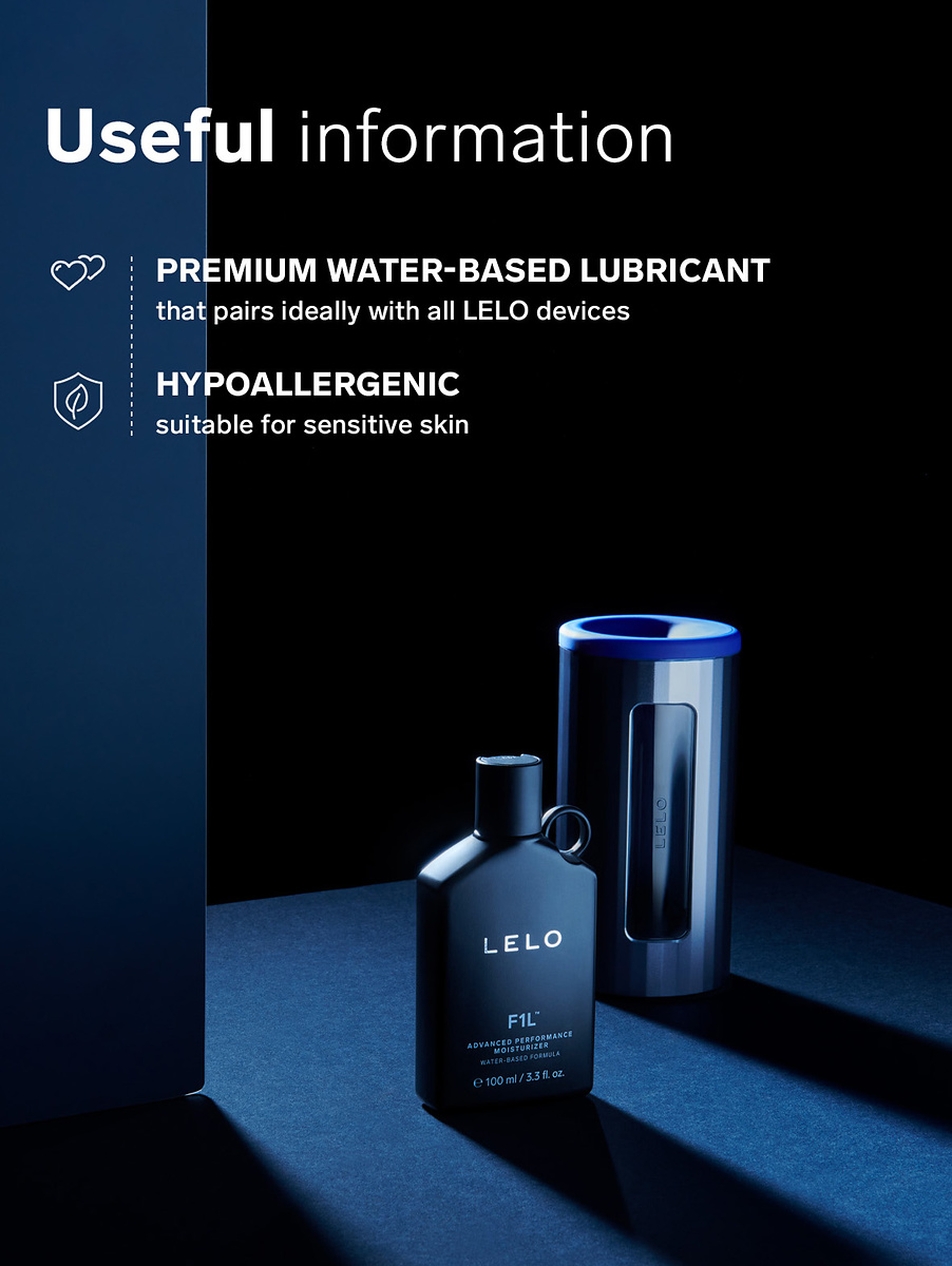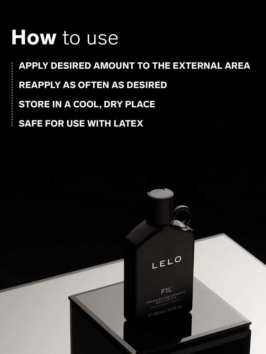 F1L Advanced Performance Moisturizer from LELO is a lubricant that allows you to experience the next level of longlasting pleasure. The lubricant is formulated to enhance your natural wetness for maximum satisfaction and sensuality - a silky, non-sticky feel.