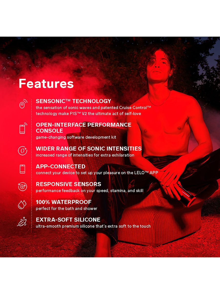With two powerful and intense motors, the F12 V2 Cruise Control and LELO's revolutionary SenSonic technology will stimulate your penis with deep and satisfying sound waves that provide a completely unique sensation.