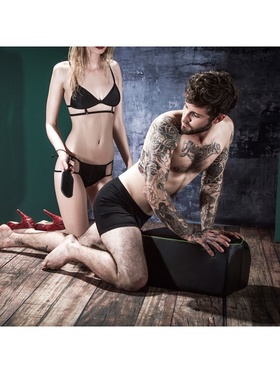 This mount is made of firm, shape-retaining foam and covered with soft faux leather that feels both luxurious and comfortable, while at the same time being easy to clean with soap and water. Your Fleshlight is positioned at the perfect angle to mimic the sensation of lying on top of a partner, but the mount also works great for standing positions or as support for oral or doggy-style play.