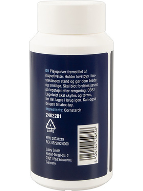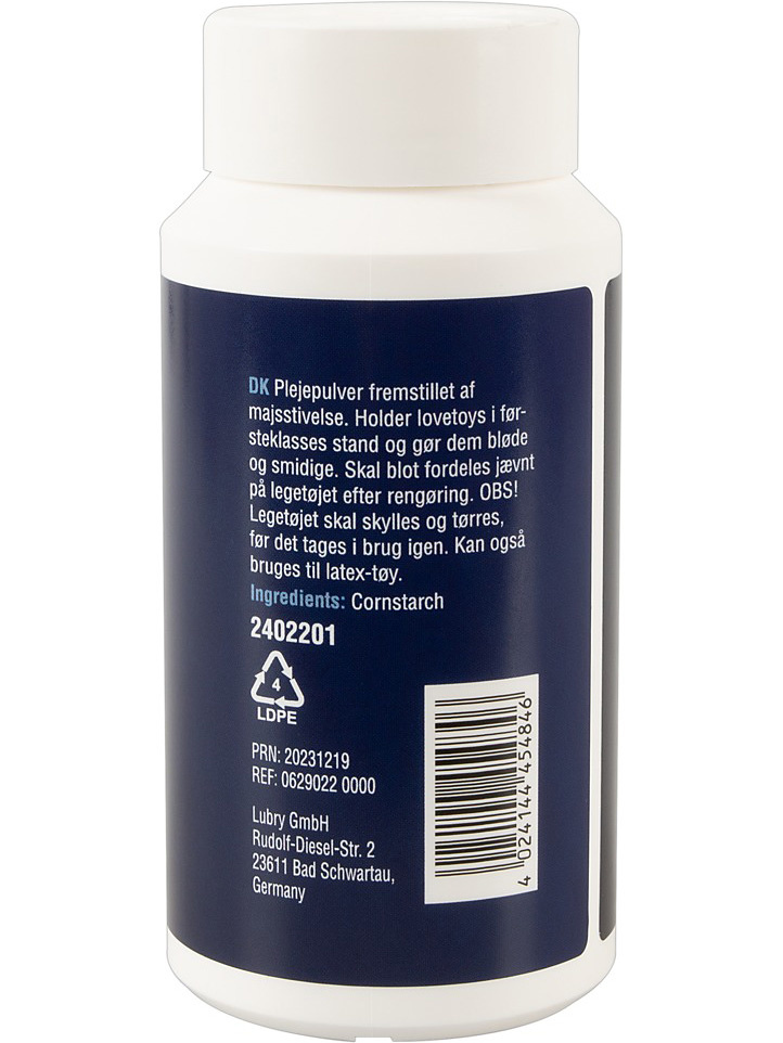 Simply apply the powder after cleaning when the toy is completely dry. After use, close the practical jar tightly so that the cornstarch powder does not absorb moisture.