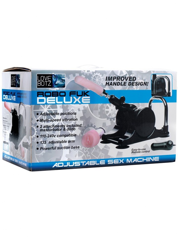 Robo Fuk Deluxe is a fully automatic sextoy that penetrates you comfortably in different levels of intensity and from all imaginable angles and heights. The angle can be adjusted a full 135 degrees, which makes all positions possible. You easily adjust intensity by turning the wheel on the control box. It can achieve a full 180 shocks per minute.