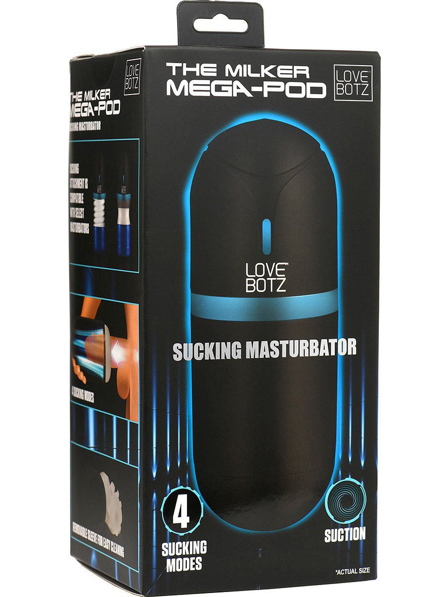 The Milker Mega-Pod is a sucking masturbator that milks your penis to incredible climaxes. The powerful motor delivers intense suction-effects - Explore its different suction-modes and take your solo-moments to new heights!
