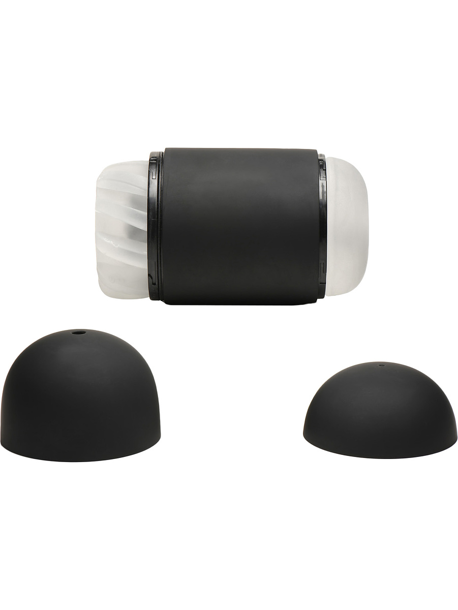 The soft and stretchy TPE-sleeve is ribbed on the inside so that every penetration and suction is enhanced. The sleeve also has two openings so you can choose which end you want to penetrate; one grooved and one spiral. The open design also makes the sleeve easy to clean after use.