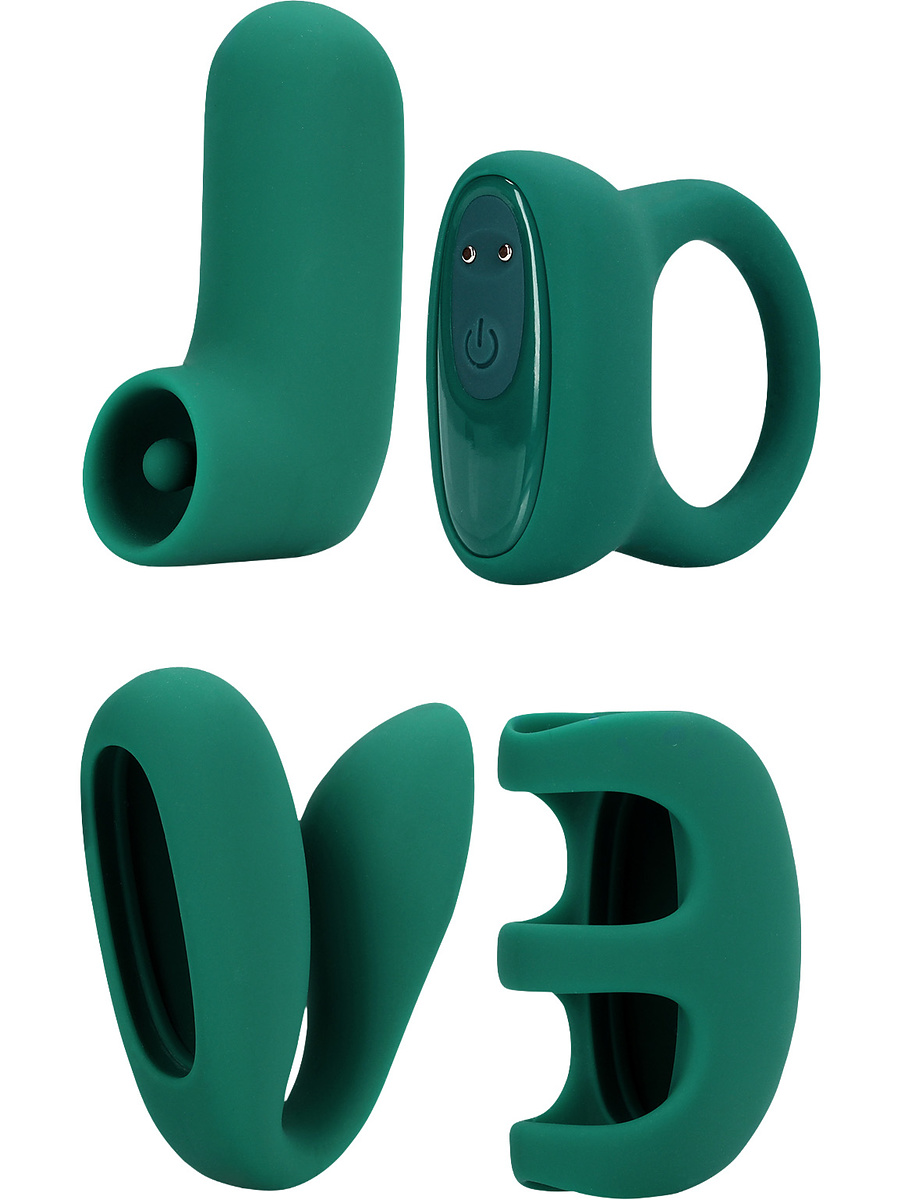 The set contains four sextoys: a clitoral stimulator, finger vibrator, penis ring and a couples toy – all in the same designed whole. All parts are powered by a powerful, rechargeable bullet vibrator that is easily moved between products. It has 10 vibration-modes, low noise-level (40 dB) and up to 50 minutes of pleasure per charge. All parts are made of ultra-soft bodysafe silicone, shaped for both pleasure and aesthetics.