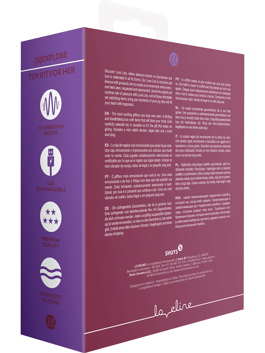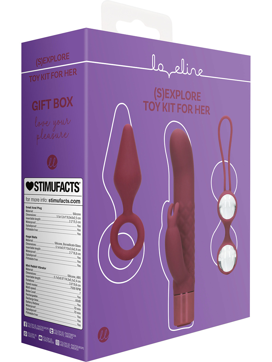 (S)explore is the perfect gift for your female partner who loves to enjoy herself. This set of sextoys includes a small rabbit vibrator, butt plug and balls - everything a woman needs for satisfying moments. Maybe she'll let you join the adventure.