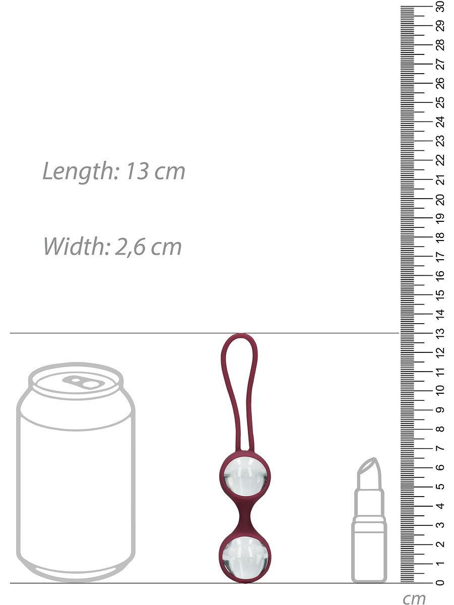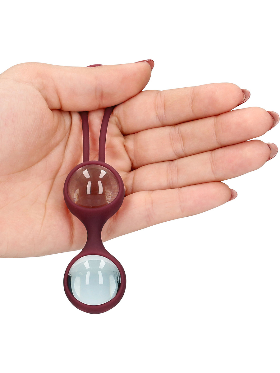 Kegel balls with a silicone holder and two glass beads - perfect for effective pelvic floor-training. Strong pelvic muscles give you the opportunity to experience more and more intense orgasms. You can also prevent minor incontinence problems and experience a tighter feeling for more stimulation during penetrative sex.