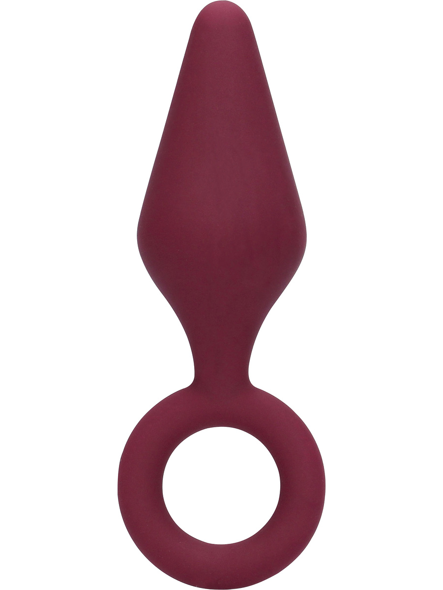 A small anal plug in silky silicone and with a tapered top for a pleasant introduction. The narrow neck means it sits comfortably in place while the ring gives you full control and prevents it from slipping in too far.