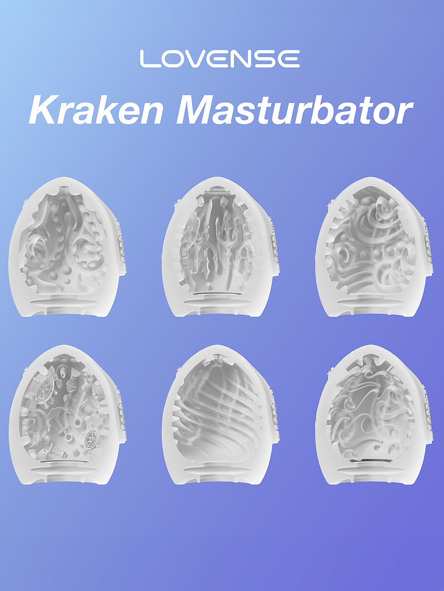 The Kraken from Lovense is a super-flexible egg masturbator that pleasantly stimulates your penis when you move it up and down. The masturbation egg is available in six varieties, each with a unique pattern on the inside for a varied feel. This single pack contains a masturbation egg - which egg you get is completely random! See product image to see which different textures it stands between.