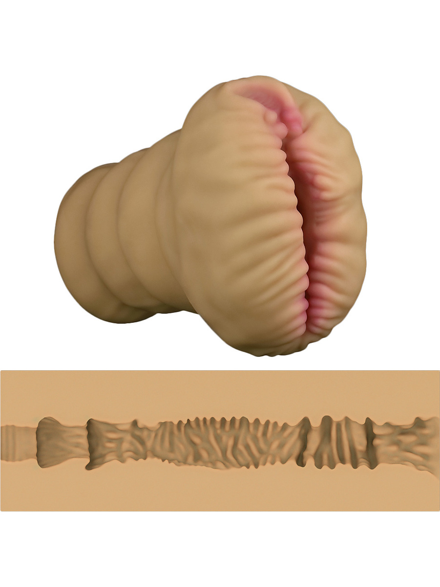 The alien-like opening with stimulating textures leads you into a tunnel filled with curves and unique textures that massage your entire penis. Inside there is everything from ridges and bumps to knobs and rings that mimic the structure of the vagina and at the same time give the sensation of a suction. Experience tight and nerve-wracking sensations when you go all in and move it up and down your penis!