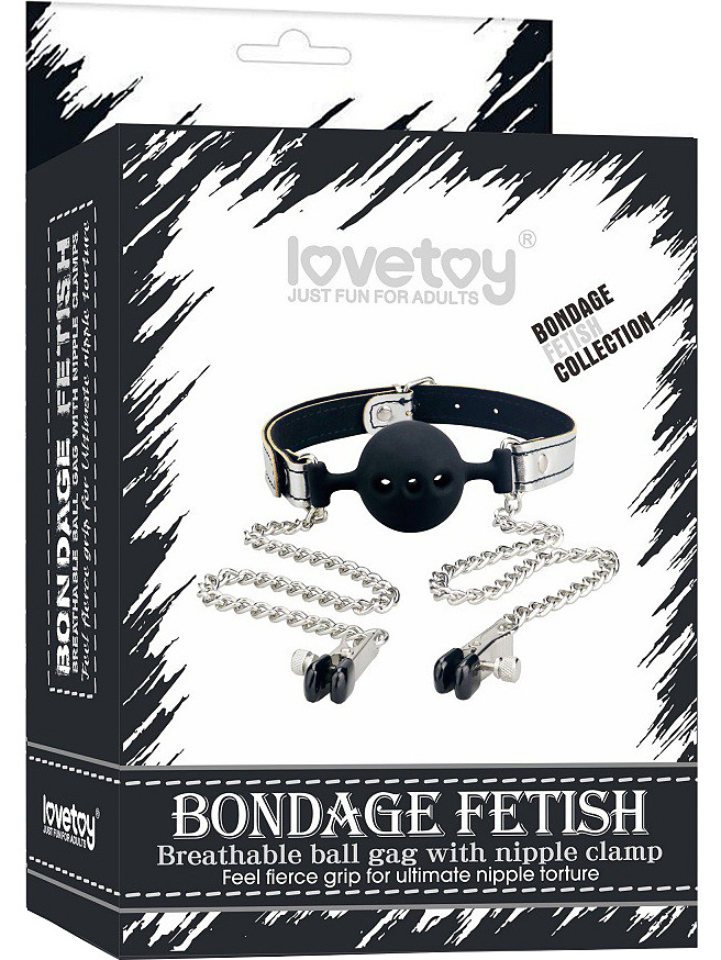LoveToy Breathable Ball Gag with Nipple Clamps