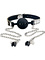 Two chains (33 cm long) lead to two adjustable nipple clips that intensely grip the nipples for satisfying dominance-play. You can also attach other accessories, such as leashes, to the D-rings on the gag ball.