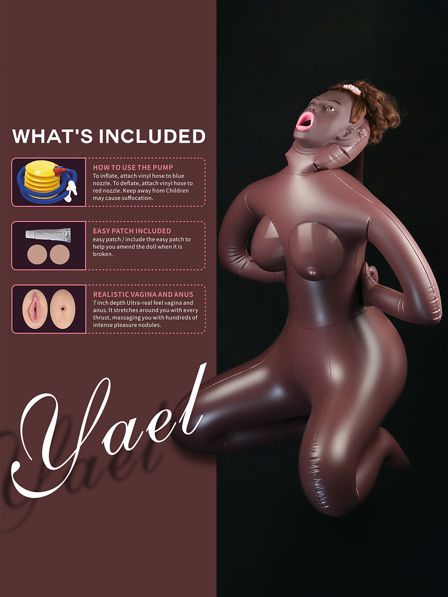 Inflate the doll with the included foot pump and enjoy pleasant masturbation-moments. The sleeve can be easily removed after use for easy cleaning. It also comes with a simpler repair kit should the doll break.