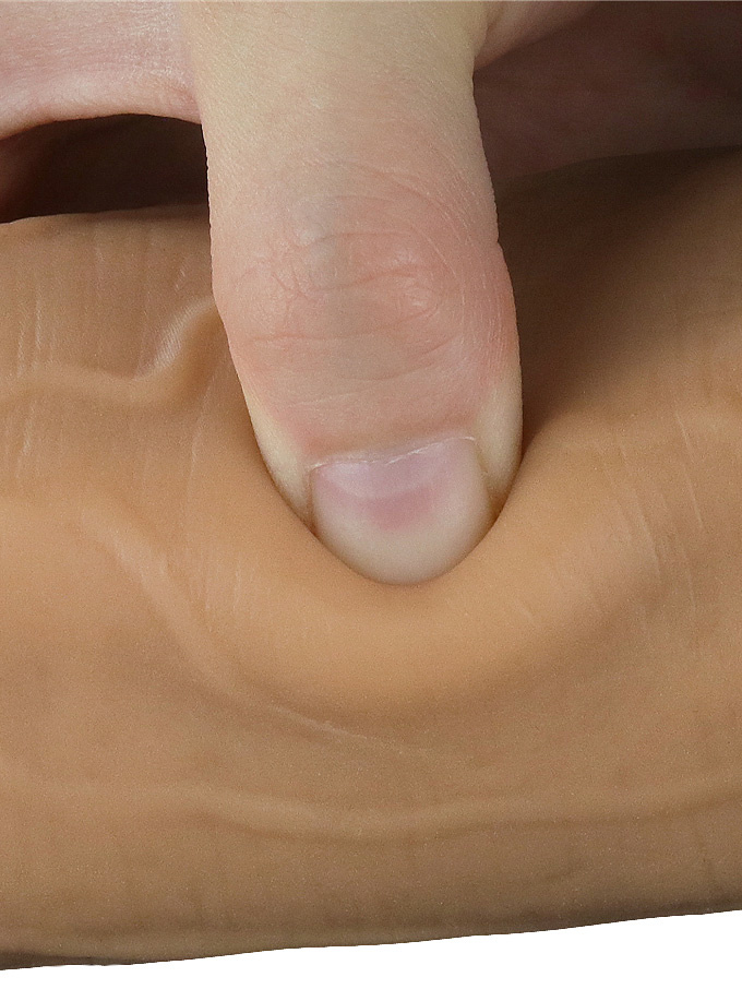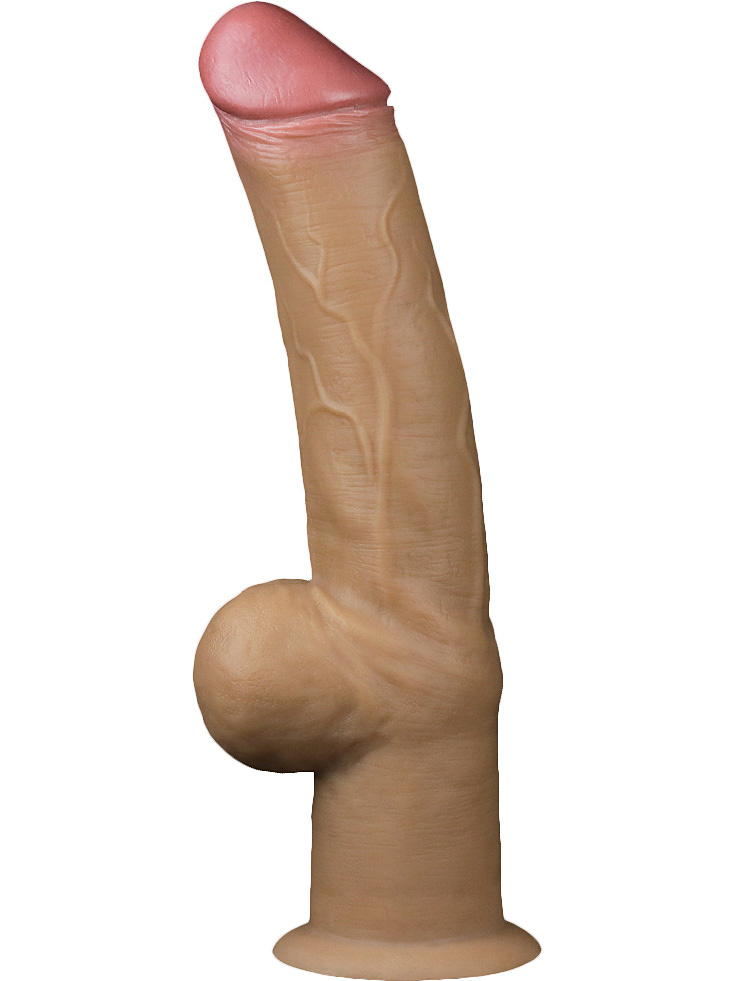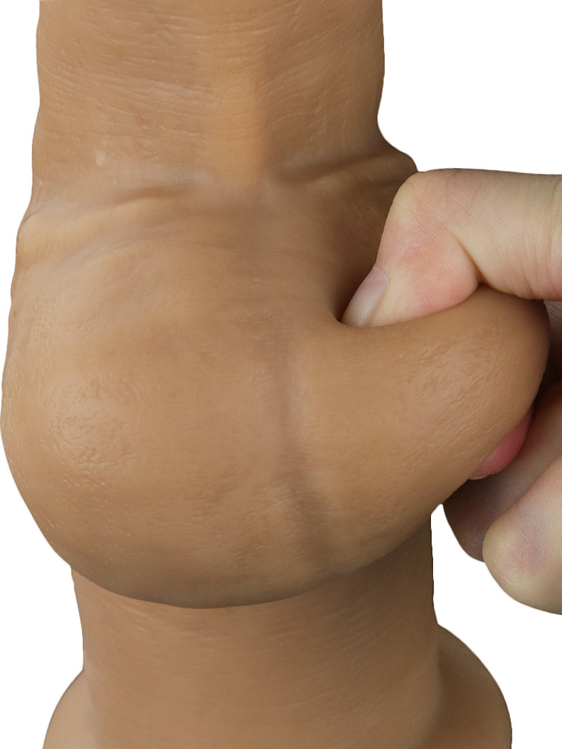 The huge dildo has a well-defined glans, pulsating veins, a textured scrotum and a double layer of silicone for a very real feel. You'll love the natural and flexible feel that comes with a realistically soft exterior and a firm interior - just like a real erection.