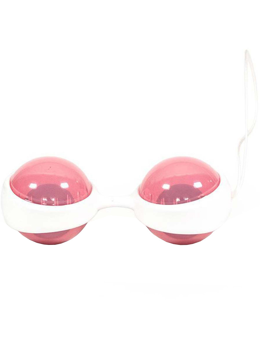 The package includes two pink balls in ABS plastic that can be used with or without the white silicone holder. Use plenty of water-based lube for comfortable penetration and maximum pleasure. The holder has a loop so you can easily remove the balls after use.