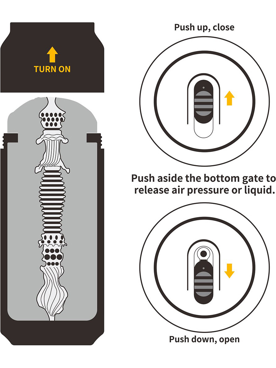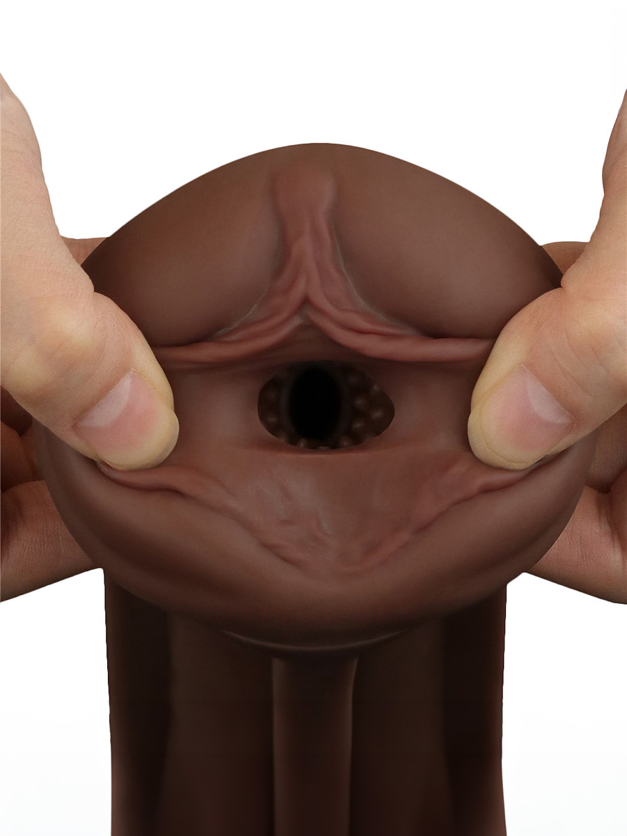 The Sultry Stout variant has a vaginal opening and on the inside are stimulating ridges, knobs and rings that mimic the feel of the real thing. At the bottom, it also has a slider that can be opened and closed to regulate the suction.