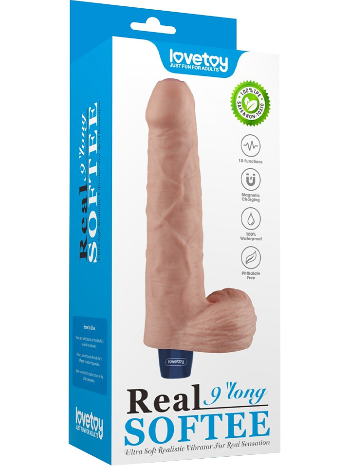 Real Softee is a realistic dildo vibrator in softer platinum silicone that takes your experience and sensation to new heights. The soft and lifelike shaft with pulsating veins and highlighted glans provides a real feeling and intense stimulation with its 10 powerful vibration-modes (3 speeds and 7 patterns).
