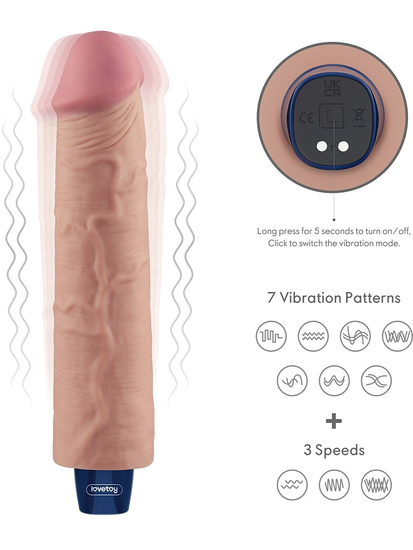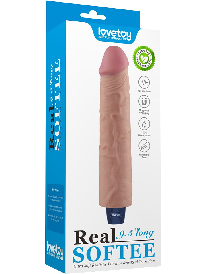 Real Softee is a realistic dildo vibrator in softer platinum silicone that takes your experience and sensation to new heights. The soft and lifelike shaft with pulsating veins and highlighted glans provides a real feeling and intense stimulation with its 10 powerful vibration-modes (3 speeds and 7 patterns).