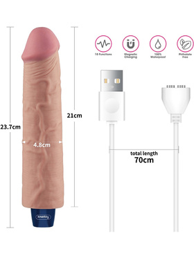 The dildo is 100% waterproof, meaning you can take it with you in the bath or shower for an added dimension of pleasure. It is also rechargeable via magnetic USB-cable, a feature that is not very common among silicone dildos.