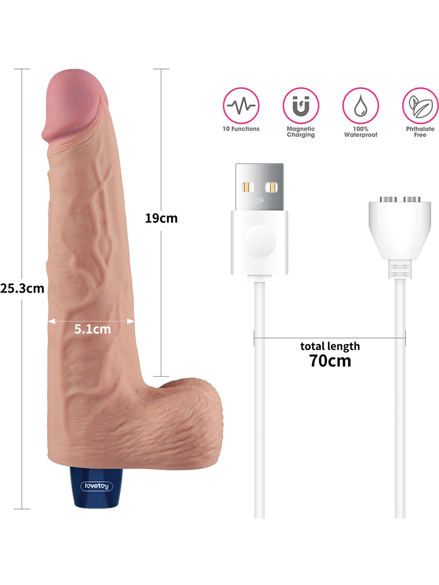 The dildo is 100% waterproof, meaning you can take it with you in the bath or shower for an added dimension of pleasure. It is also rechargeable via magnetic USB-cable, a feature that is not very common among silicone dildos.