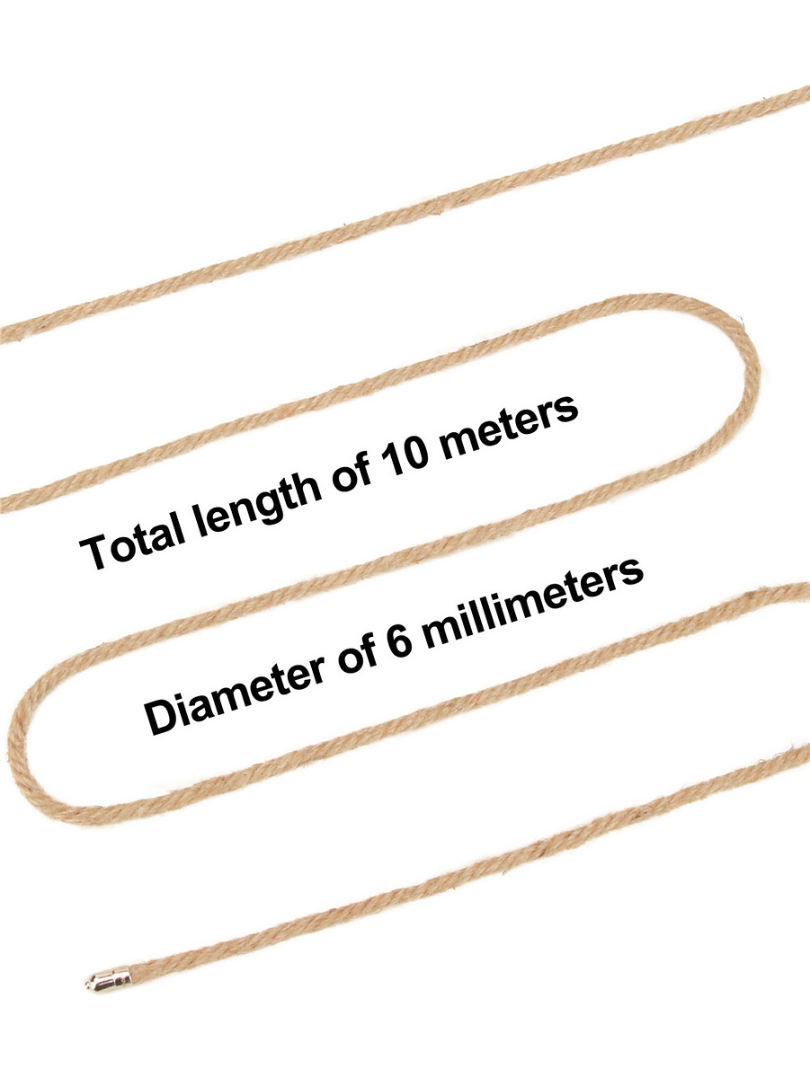 The rope is made of 100% natural hemp, carefully pre-treated and ready to use immediately. With a length of 10 meters and a width of 6 mm, the rope gives plenty of room for creativity. Its rough, textured surface creates a distinctive tactile experience that is hard to beat. The ends are equipped with unique metal caps, which adds an exclusive touch.