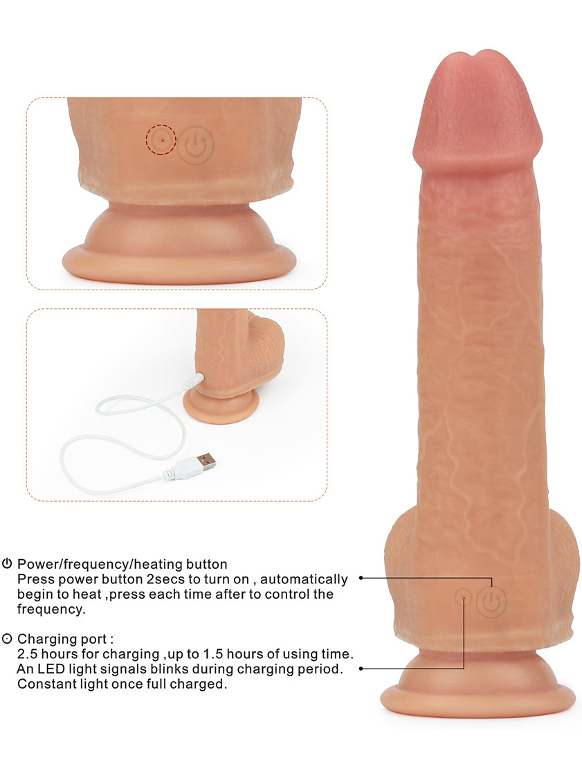 This realistic dildo-vibrator is made to satisfy you with a lifelike sensation combined with stimulating vibrations, rotations and heat.