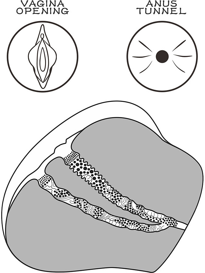 The vaginal tunnel (12 cm deep) has many exciting textures waiting to stimulate your penis as you slide deep inside. The anal tunnel (15 cm deep) is a bit tighter and full of textures and curves. Experiment to find the best positions - For example, you can lay it flat or hold her close while you explore the two holes.
