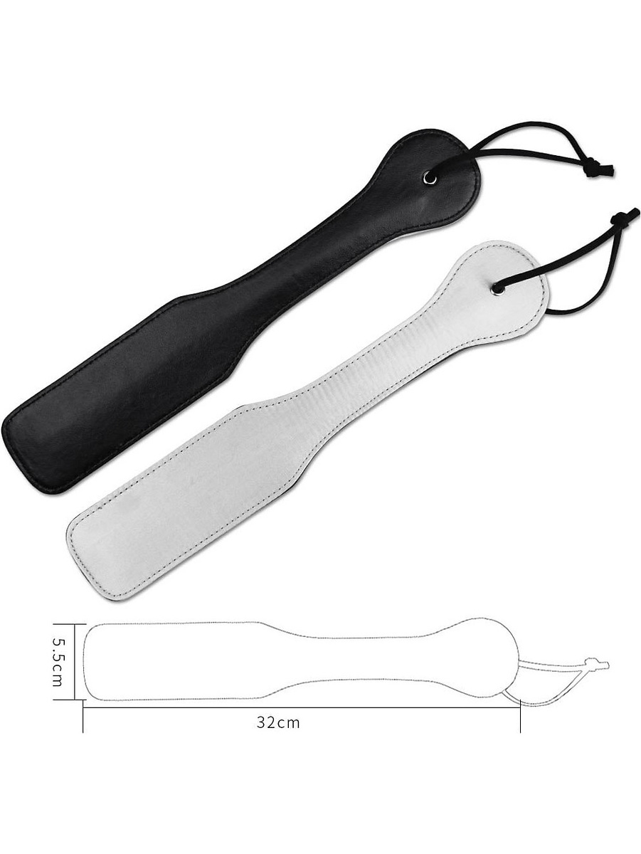 Start gently with the satin side to warm up before moving on to more intense spanking with the leatherette side. Beneath the satin is a padding of neoprene that provides a softer and more sensual hit. In contrast, the artificial leather will be firmer to the touch to provide a harder and more distinct hit.