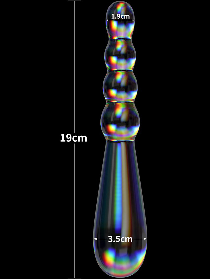 Rising Ripples is a distinctive glass dildo with a tapered design that gently tapers from base to tip. The lower part of the shaft has a smooth surface before transitioning into four ideally rounded spheres. The unique structure makes it perfect for anal stimulation, where each bead provides an exciting sensation during both insertion and removal. Feel free to try pulling it out during orgasm, the sensation becomes extra intense.