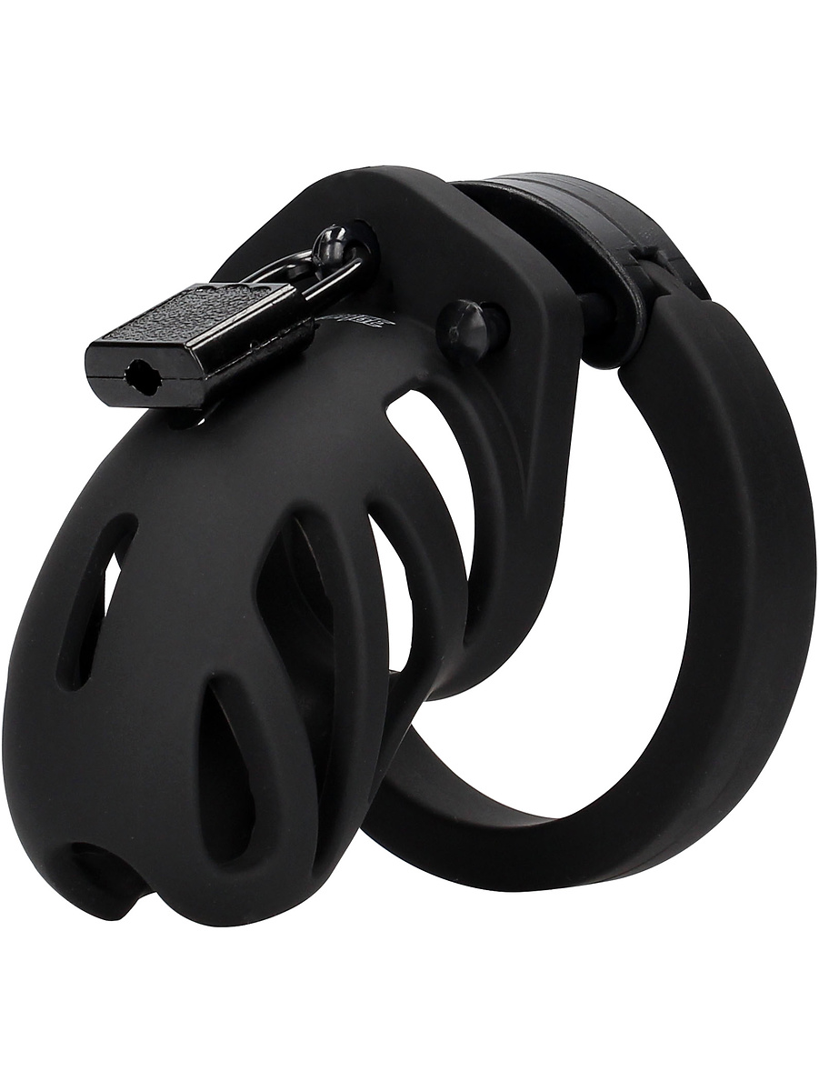 Thread both penis and scrotum through the ring, place the limp penis in the cage and secure it with the included padlock. Let your partner handle the keys and have the power to decide when it's time to break free. In addition, a number of plastic locks are included that can be snapped off if the temptation becomes too great.
