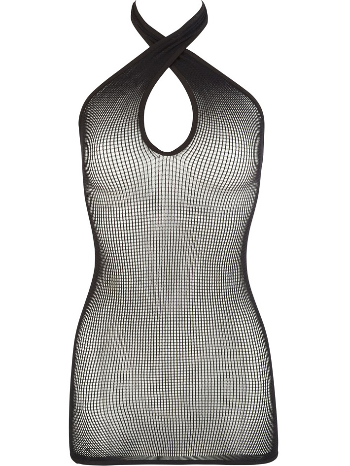 Seamless lingerie-dress in a stretchy and sexy mesh design that allows the skin to show through. It has a stylish halterneck-design where the shoulder straps cross at the front and join at the neck leaving the upper back bare.